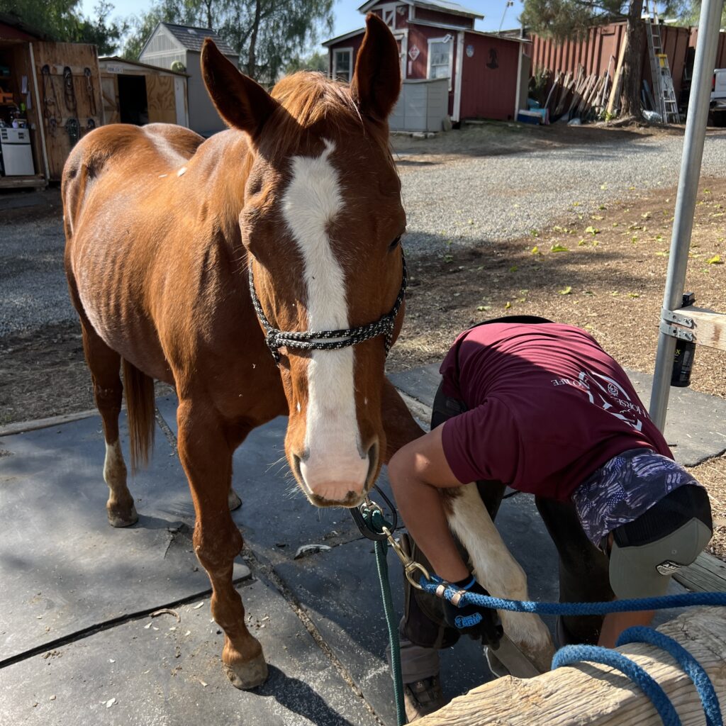 - Antonio, our awesome farrier, taking care of Noble.
